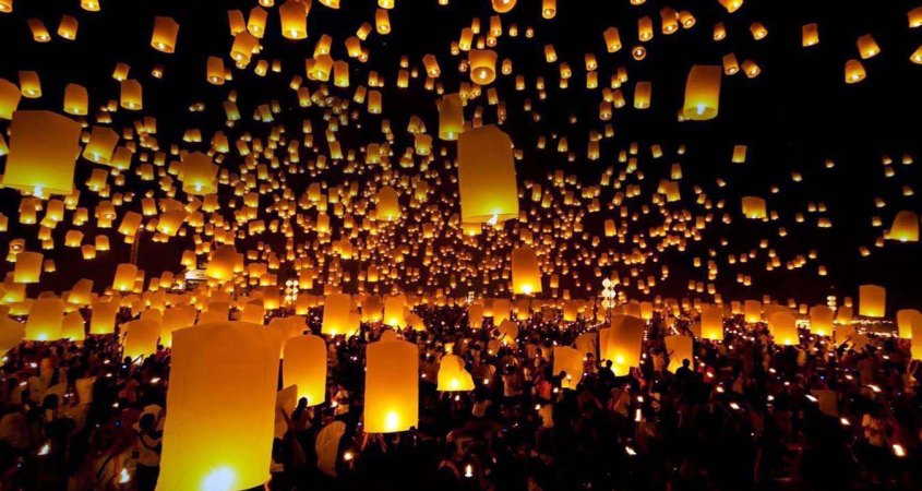 台湾では旧暦の1月15日元宵節の時に一連の年越しの行事の締めくくりとして花火を打ち上げ、ランタンを空に飛ばして健康と安泰を祈願し、新しい年を迎える習慣がありました。