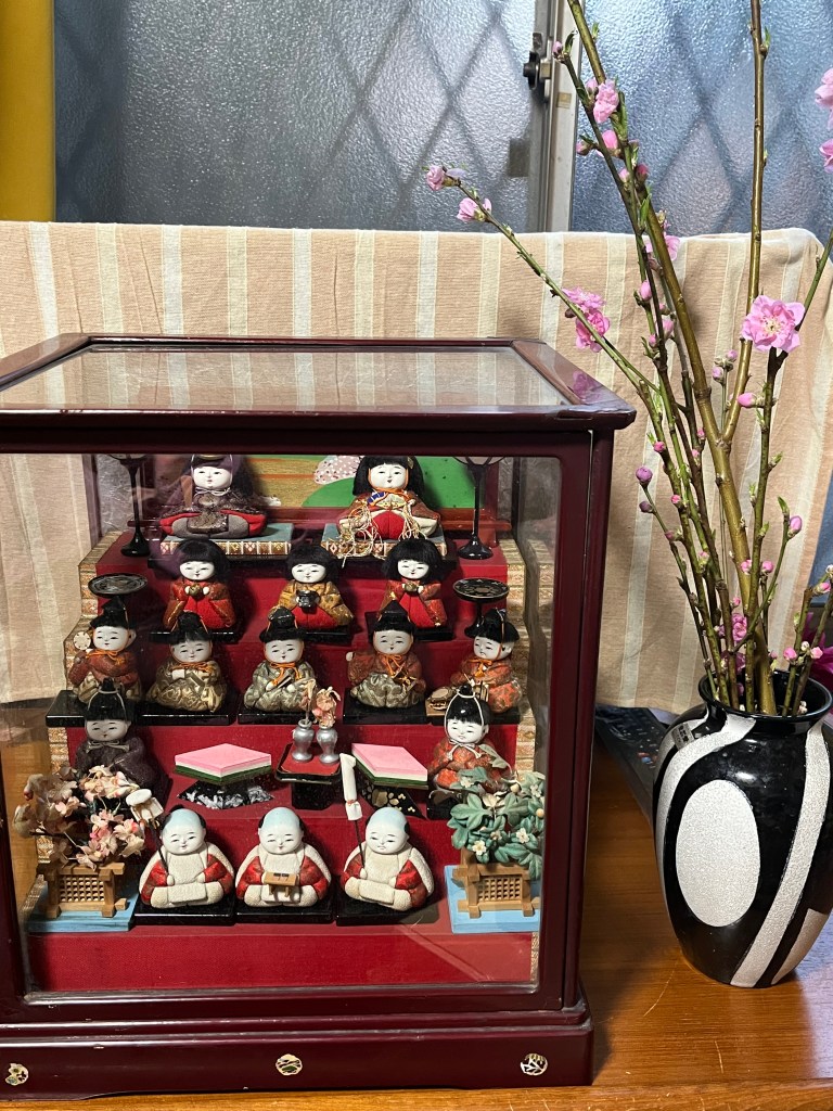 今日はひな祭りですね~ 私もお雛さま飾り、桃の花も買いました。何だか枝ぶりのあまりよくないスカスカの桃の花ですが、高かったな~(;^_^A