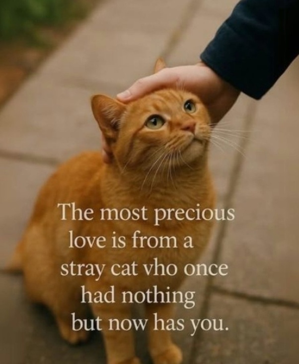 “The most precious love is from a stray cat who once had nothing but now has everything.”